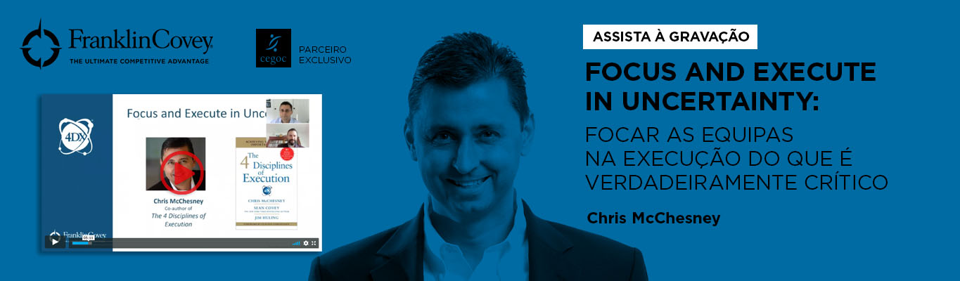 Neste terceiro webinar do ciclo ACHIEVING RESULTS IN UNPREDICTABLE TIMES, Chris McChesney, autor do bestseller "As 4 Disciplinas da Execução" e um dos mais respeitados especialistas mundiais na área da Execução, partilhará uma framework para diminuir o ruído gerado pela complexidade do atual contexto e ajudar a focar a sua atenção e a energia das suas equipas na execução eficaz e no essencial para sobreviver e superar o que aí vem após o COVID-19.
